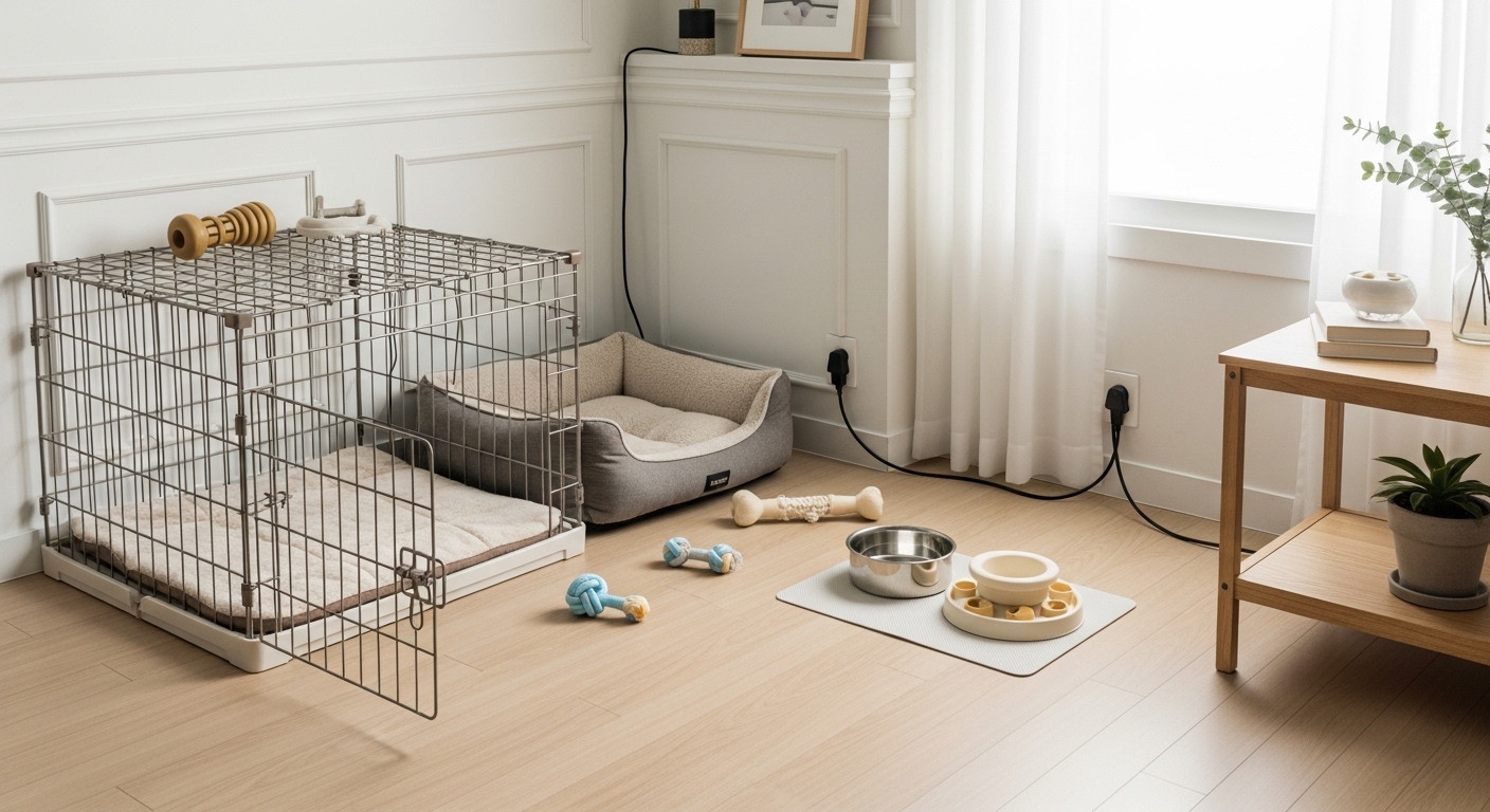 또 하나 놓치기 쉬운 것이 강아지가 없는 시간 동안의 환경입니다. AAHA는 지루함을 줄일 수 있는 적절한 환경 풍부화와 안전한 제한 공간을 강조합니다. 즉, 보호자가 잠깐 자리를 비울 때를 대비해 장난감, 쉬는 공간, 위험물 차단이 갖춰져 있어야 합니다. 초보 보호자는 사랑과 관심만 있으면 된다고 생각하기 쉽지만, 실제로는 안전한 시스템이 강아지 적응에 더 큰 영향을 줄 수 있습니다.